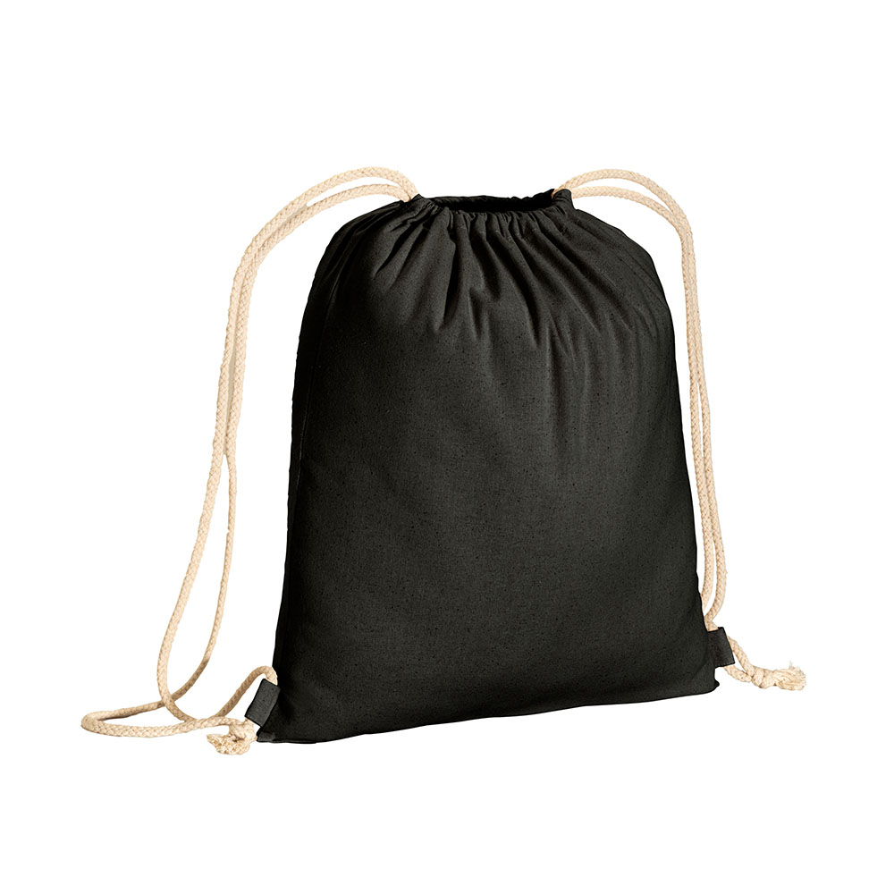 Zainetto a tinta unita in cotone riciclato 140 g/m2. Chiusura con doppi cordini