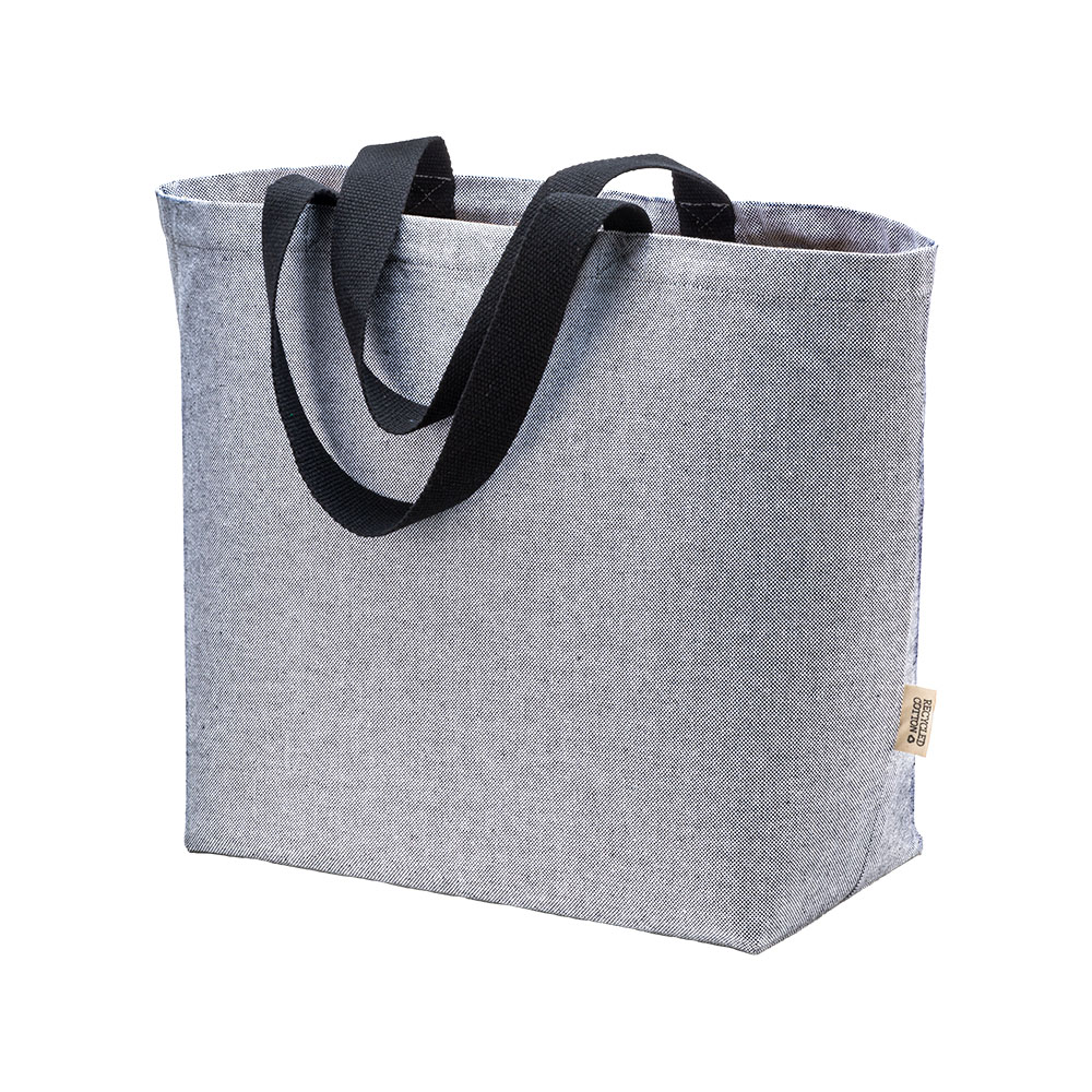 Borsa in cotone riciclato 340 g/m2 con effetto melange. Manici lunghi colorati e soffietto